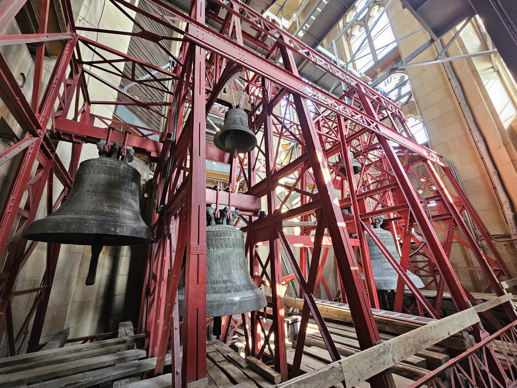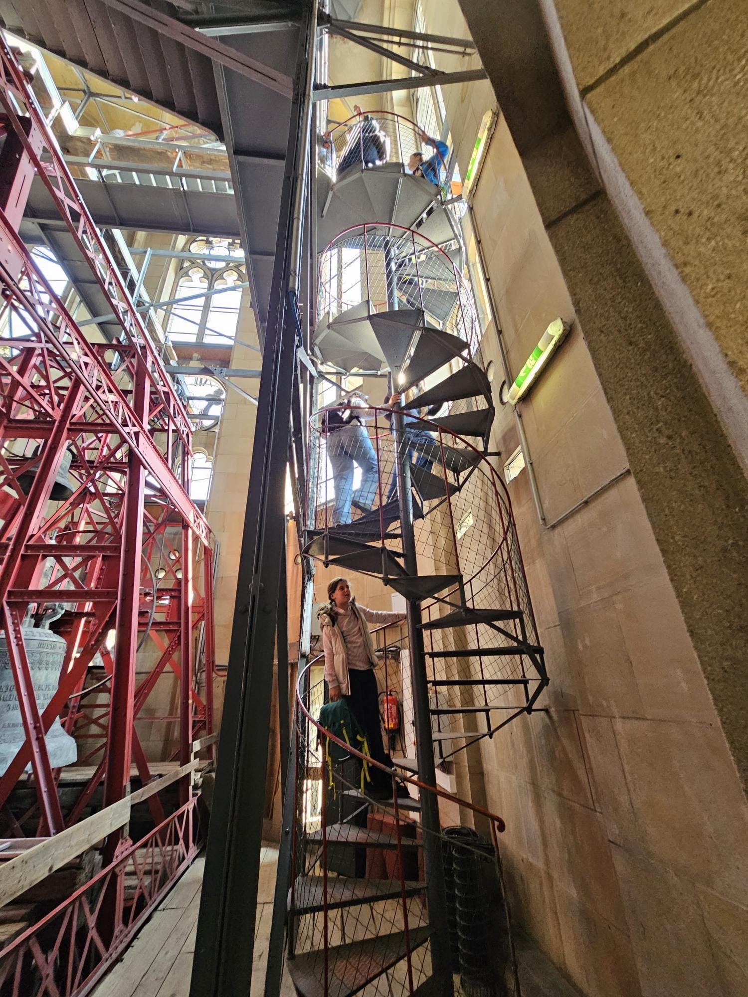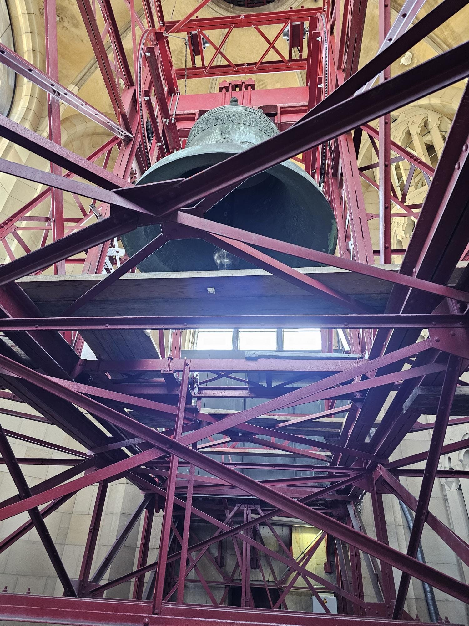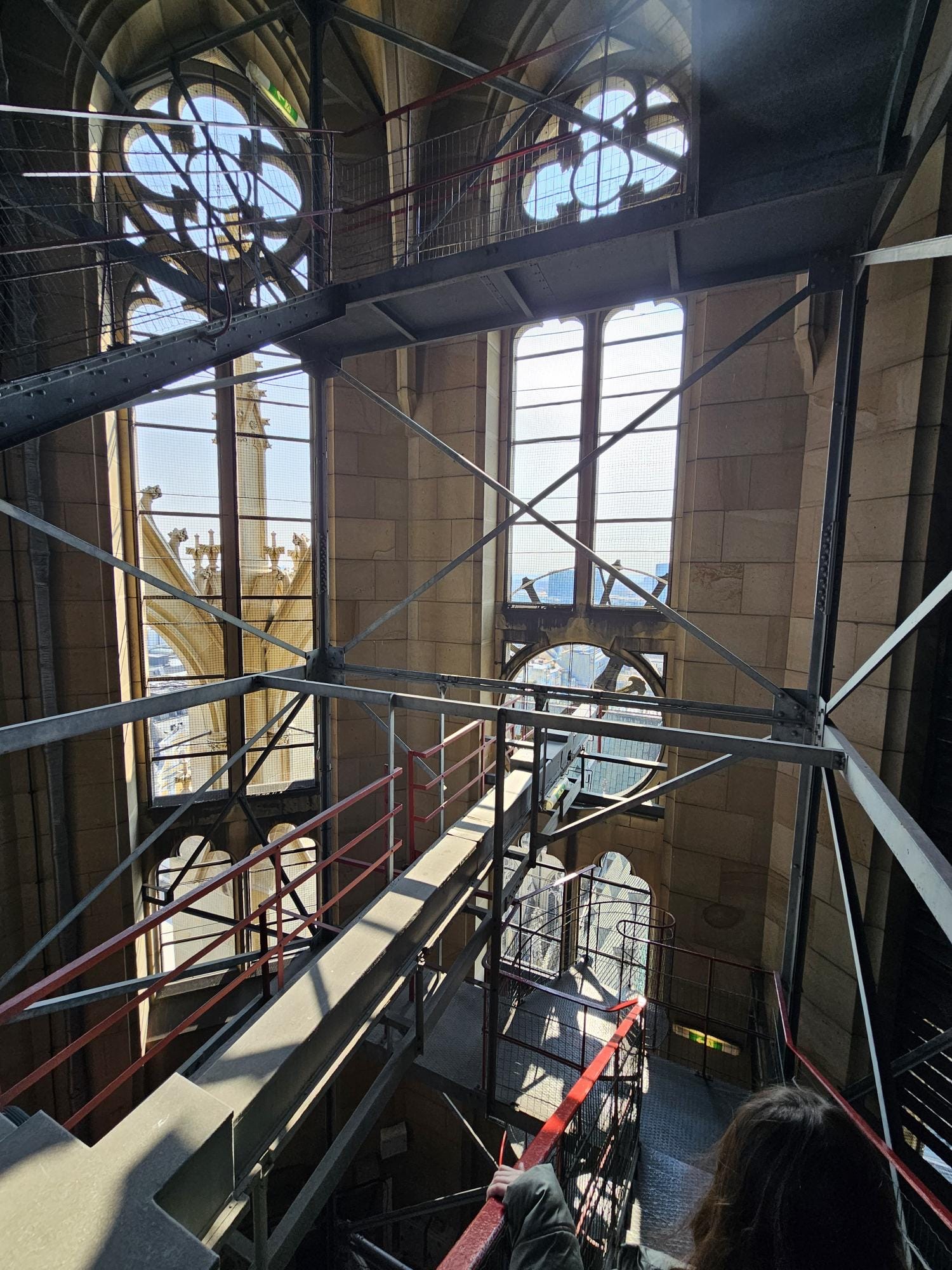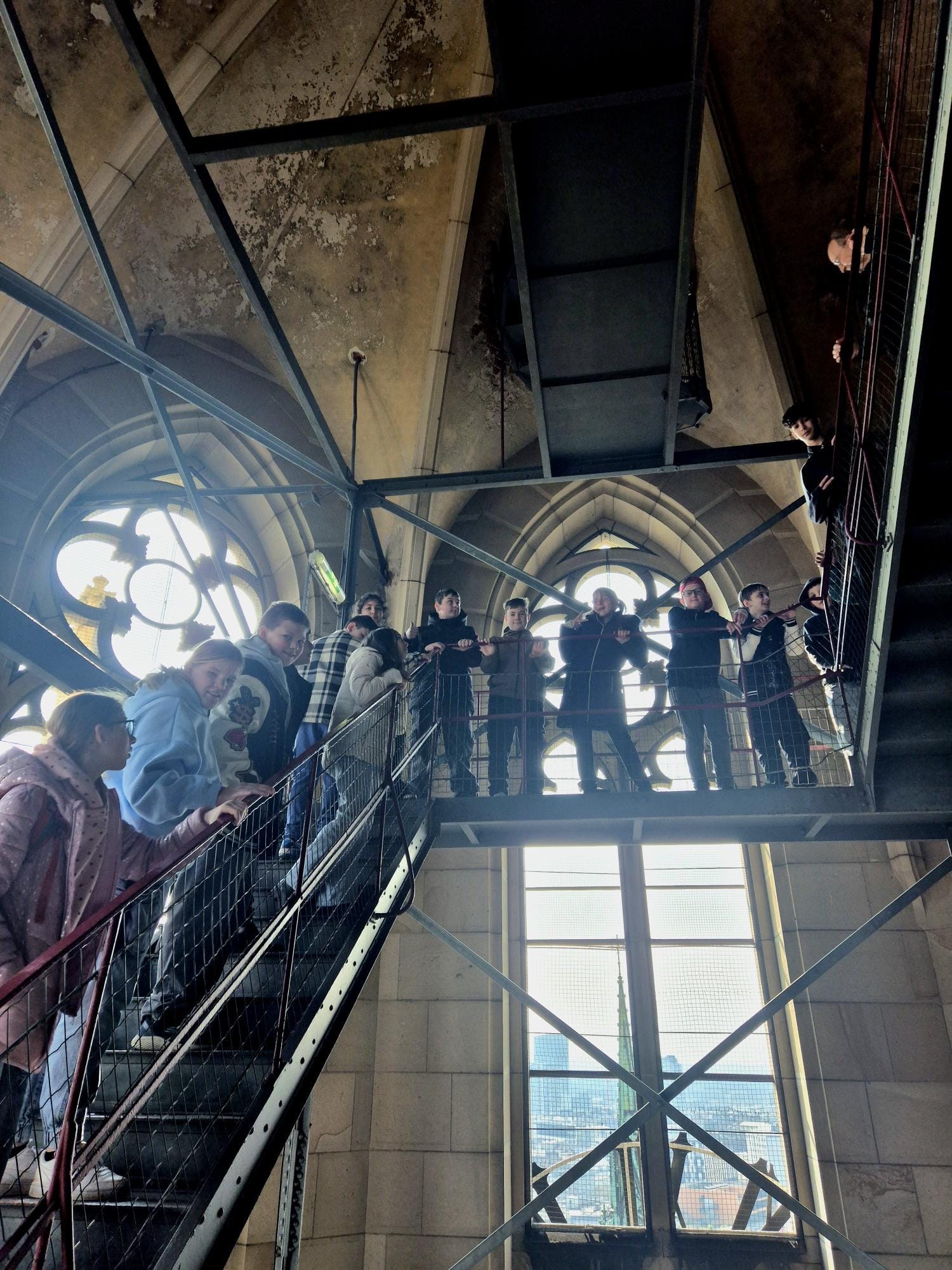 Ein weiteres Highlight war die Turmbesteigung. Fast 400 Stufen mussten bewältigt werden, bevor die Gruppen die Aussicht auf Linz bei herrlichem Wetter genießen konnten. Unterwegs kamen wir auch an den sieben Glocken des Doms vorbei, die bei manchen Schüler:innen für einen kleinen Schreckmoment sorgten, als sie plötzlich zu läuten begannen.